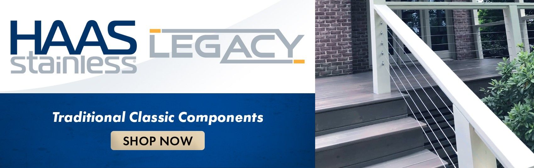 Ideal for deck railing and banister railing, The HAAS Legacy railing system is our most traditional collection. For many of our cable railing customers, the Legacy system is the straightforward choice. Made of stainless steel, these cables will resist harsh environments. The components are easy to order and install with no-nonsense. Check out our how-to videos for detailed installation instruction of our HAAS Cable Railing Systems, made in the USA.