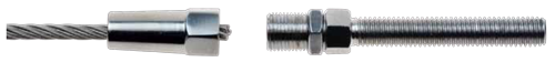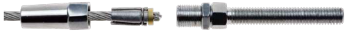 - Insert the cable from the bottom of the housing and place the jaw with the tapped end toward the housing (make sure the 3 piece jaw spreads around the cable evenly), place the copper washer after the jaw, the cable should protrude about 1/8" beyond the copper washer.