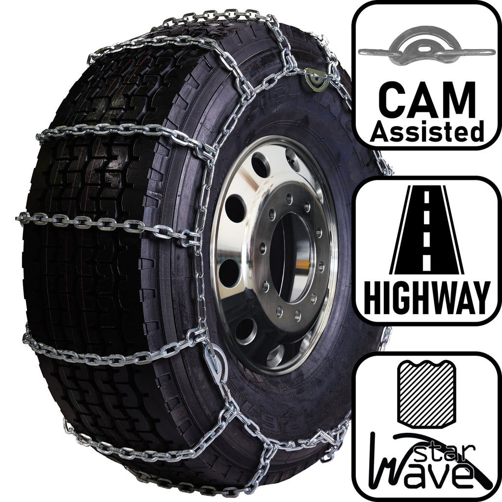 • The square link design improves traction and grip compared to the rounded twist link tire chain